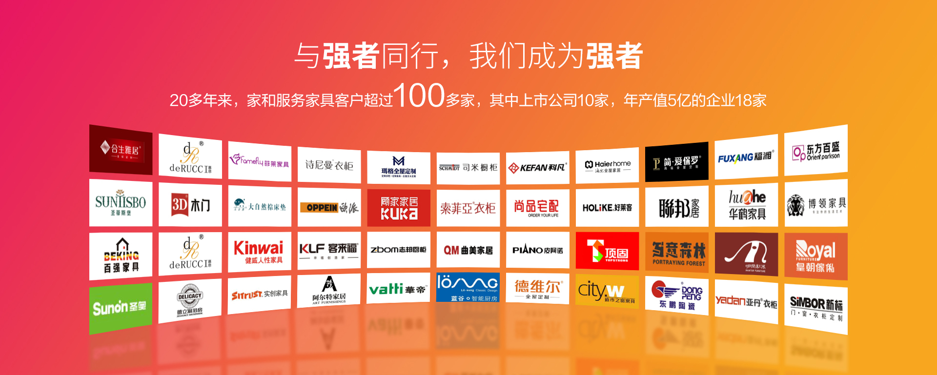 專(zhuān)注大家居行業(yè)多年,與業(yè)內(nèi)歐派、尚品宅配、索菲亞等眾多優(yōu)勢(shì)品牌結(jié)成戰(zhàn)略合作伙伴關(guān)系。
