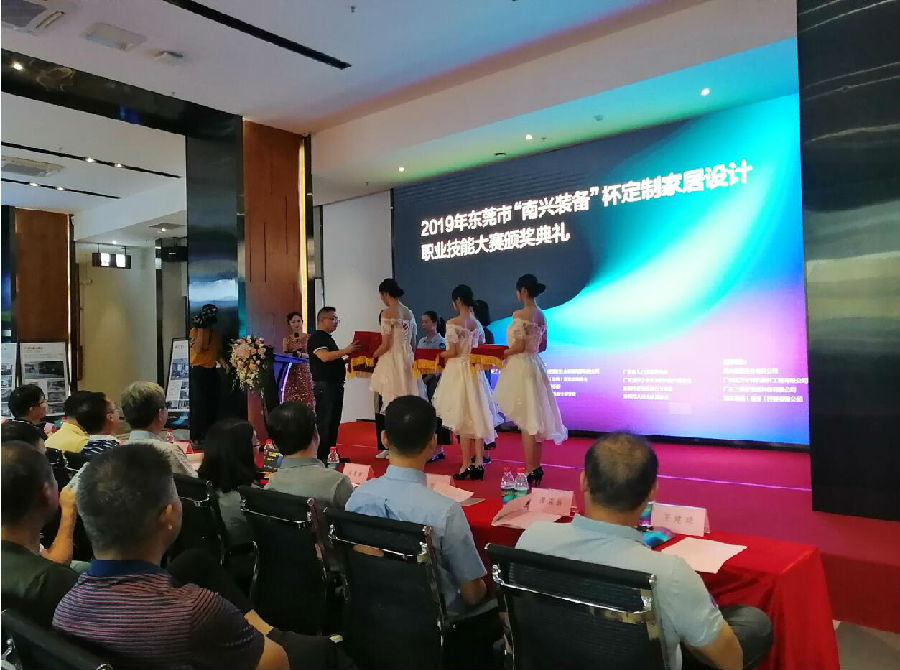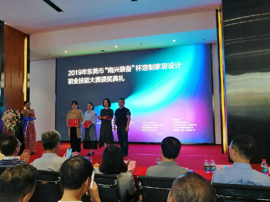 2019.10.22日,家和董事長(zhǎng)藍(lán)青華先生應(yīng)邀參加2019年?yáng)|莞市“南興裝備”杯定制家居設(shè)計(jì)職業(yè)技能大賽頒獎(jiǎng)典禮,并做了主題演講。